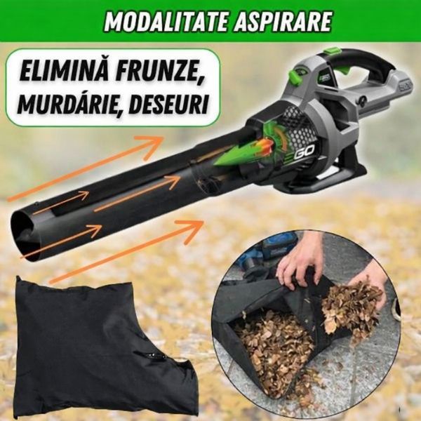BlowerXPro™ nu se limitează la suflare: se transformă și atacă pe două fronturi. Funcția ASPIRARE duce curățenia la un nivel superior, transformând BlowerXPro™ într-un aspirator puternic și necruțător, capabil să aspire pietre și moloz de dimensiuni medii fără ezitare.