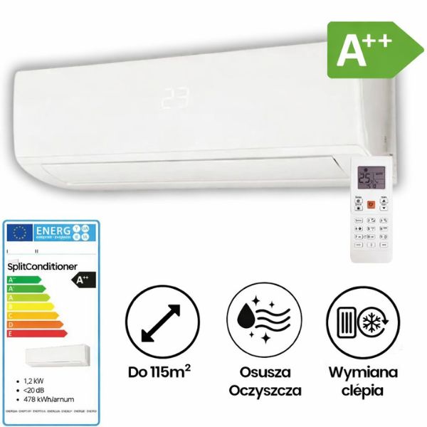 Klimatyzator z energooszczędnym systemem ogrzewania, który skutecznie ogrzewa pomieszczenia o powierzchni do 115 m²