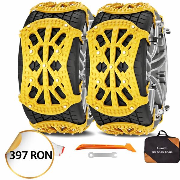 lanțuri de zăpadă universale – ușor de montat, nu deteriorează anvelopele, compacte și economisesc spațiu în portbagaj, potrivite pentru zăpadă, noroi și drumuri neasfaltate, omologate pentru a evita amenzile rutiere, compatibile cu autoturisme, suv-uri, scutere și motociclete, rezistente și nu ruginesc.
